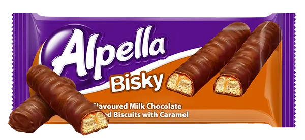 Alpella Bisky is a premium snack that combines crunchy biscuit layers, rich caramel, and smooth milk chocolate, delivering a balanced and delightful taste experience. It is designed to be the perfect choice for everyday snacking, offering both delicious flavor and quick energy in one bar.