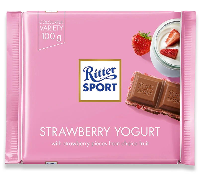 sugar, palm fat, cocoa mass, skimmed MILK yogurt powder (7,5 %), cocoa butter, whole MILK powder, lactose (from MILK), skimmed MILK powder, strawberries (2 %), butterfat (from MILK), cream powder (from MILK), maltodextrin, emulsifier: lecithins (SOYA).